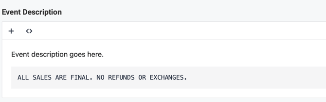 This feature allows a user to add a code block. Please keep in mind this is different than editing the HTML. The code block would appear just as is in the event description. You do not need to enter actual code, you can have plain text that just stands out in a different font with a grayed out background.