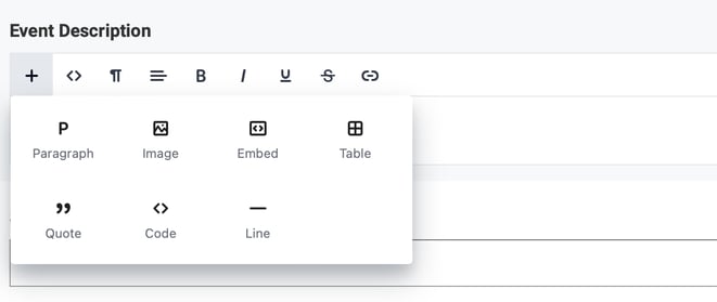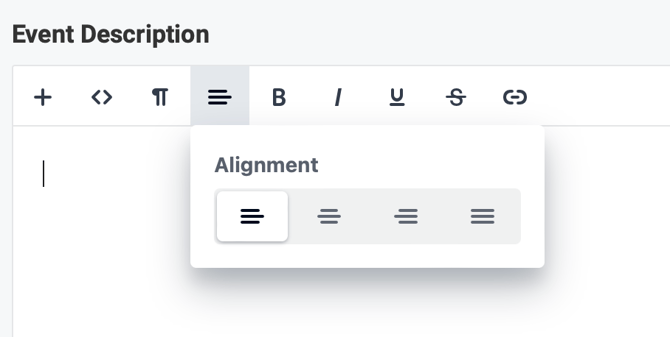 We've made some updates to the text editor in the event description of the event builder. When users first view the event description field, it will look like the image below.
